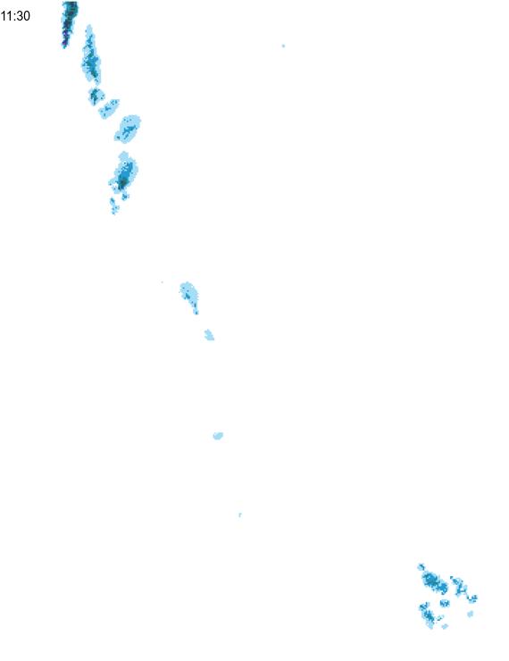 Das Radarbild zeigt Ihnen die Verteilung der Niederschlagsfelder der letzten 2 Stunden im 15-Minuten-Intervall. Die verschiedenen Farben kennzeichnen dabei die Intensität der Niederschlages.